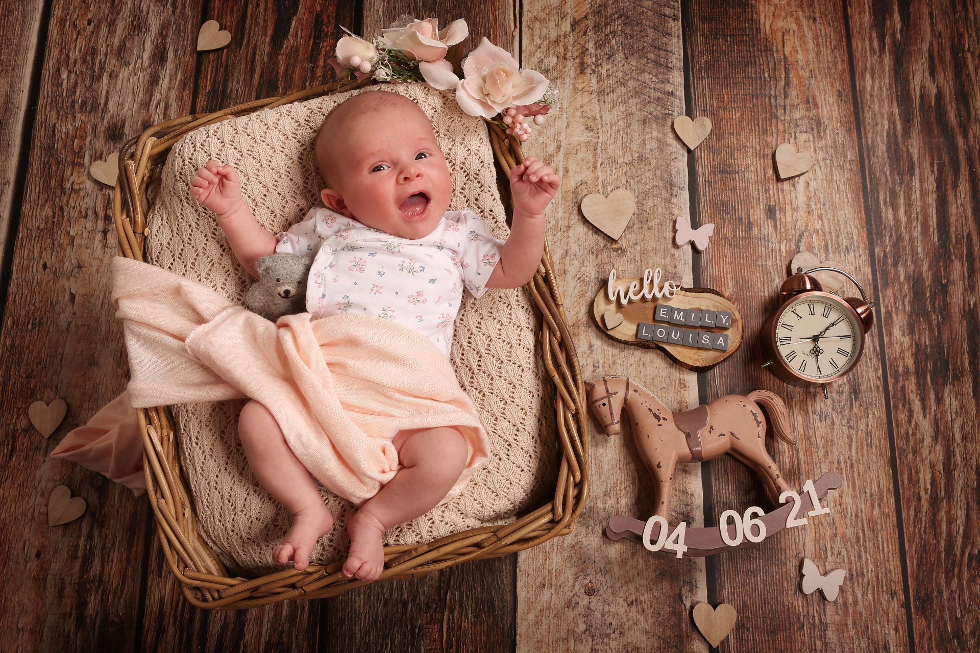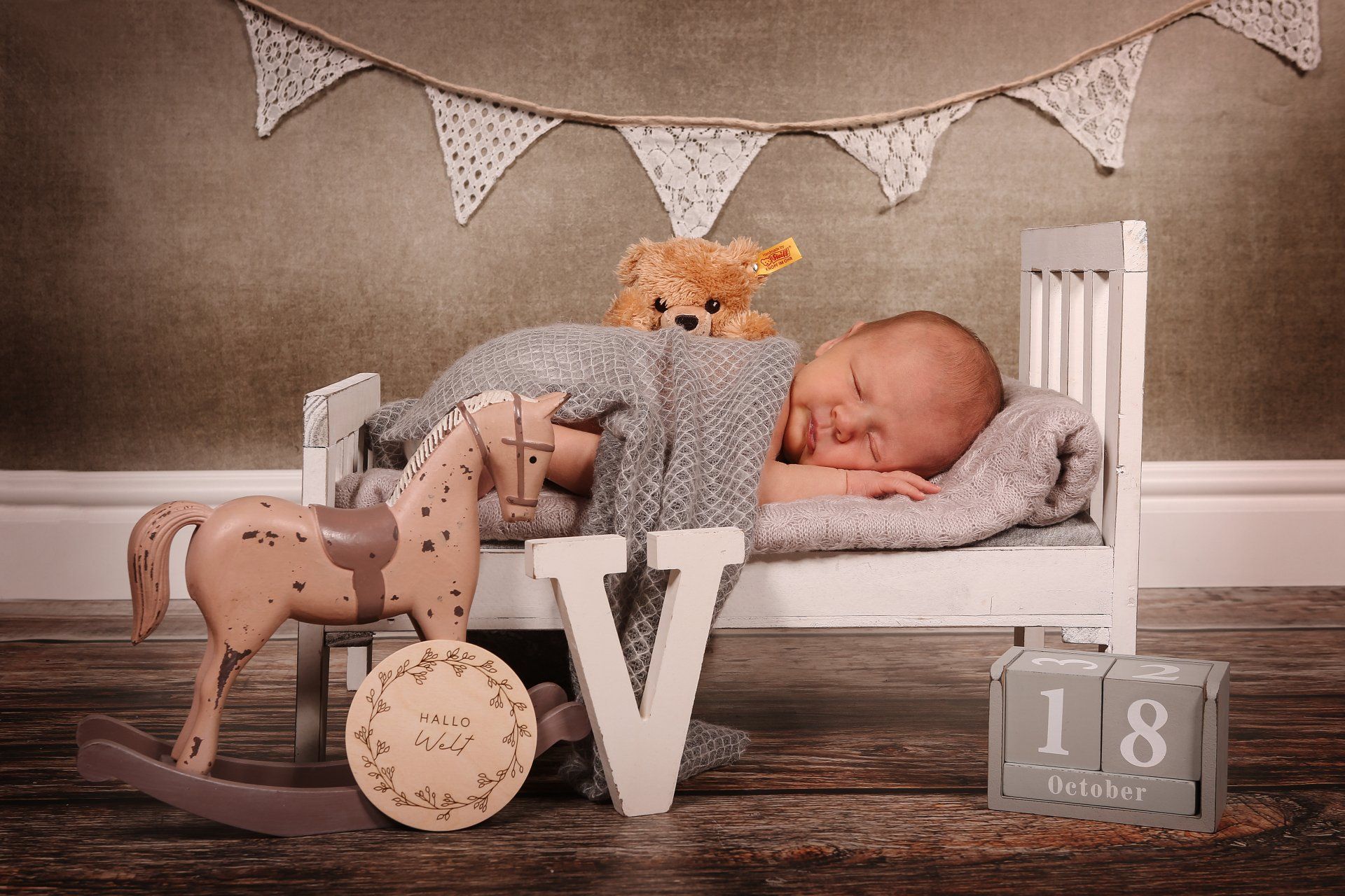 Für Neugeborenen und Babyshootings ist mein Studio bestens ausgestattet - die Kleinsten sind immer herzlich willkommen. Für Wärme und Gemütlichkeit wird in meinem Fotostudio gesorgt - von Heizlüfter, über gemütliche Decken ist alles vorhanden. Zudem besitze ich eine große Auswahl an Körben, Bettchen, Decken, Tücher, Hintergründe, kleine Kuscheltiere, Dekoration, Haarbänder und Mützchen. Diese Details sind neben den zuckersüßen Babys das i-Tüpfchen in meinen Fotos.