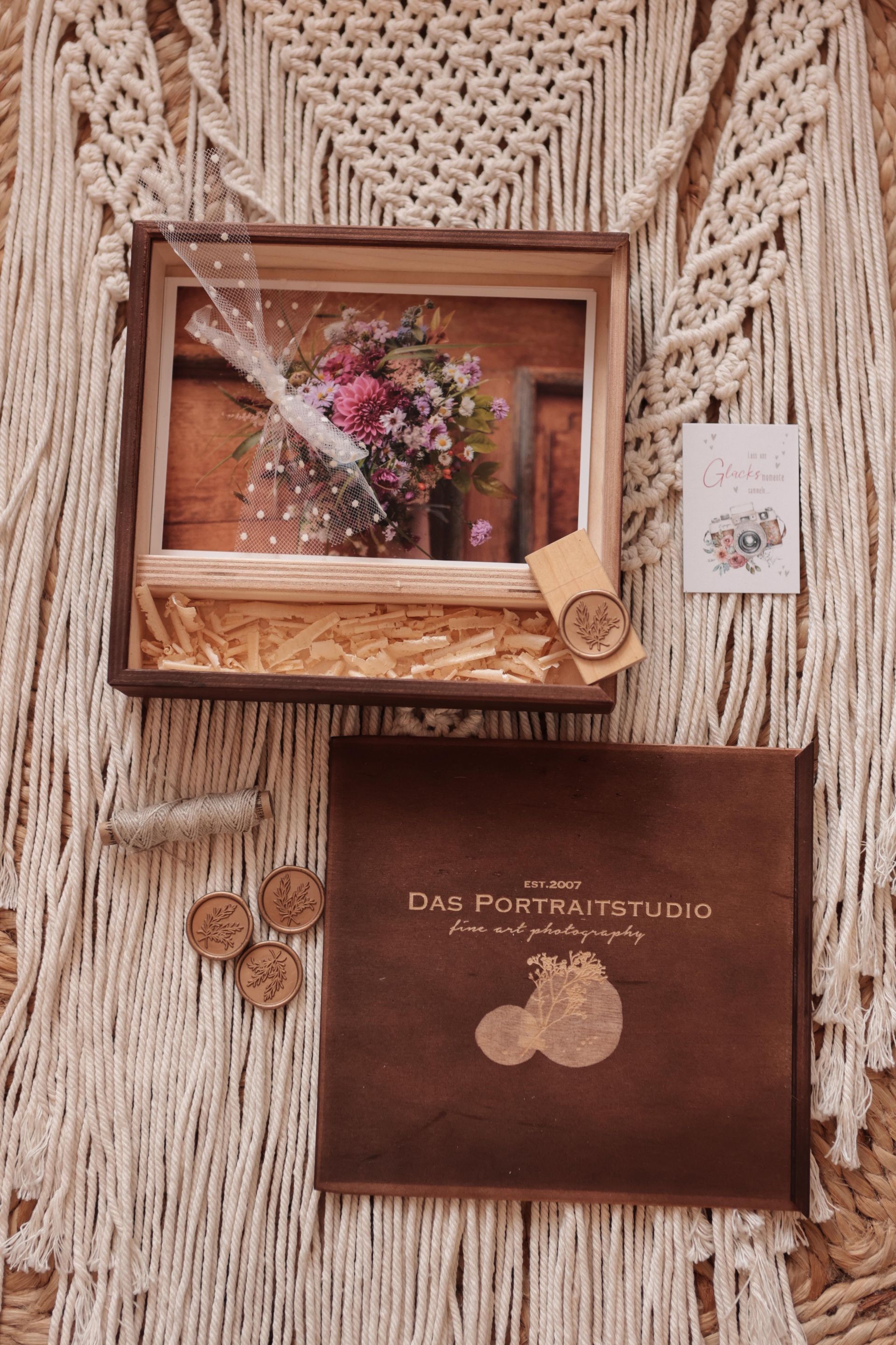 Ihr erhaltet alle entstandenen Bilder auf USB Stick, so wie 25 Fachabzüge, liebevoll verpackt in einer hochwertigen Holzbox.